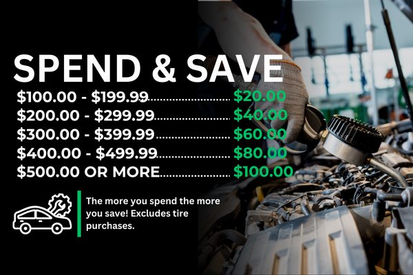 Spend and save! Spend $100 - $199 and save $20, spend $200 - $299 and save $40, spend $300 - $399 and save $60, spend $400 - $499 and save $80, or spend $500 or more and save $100.